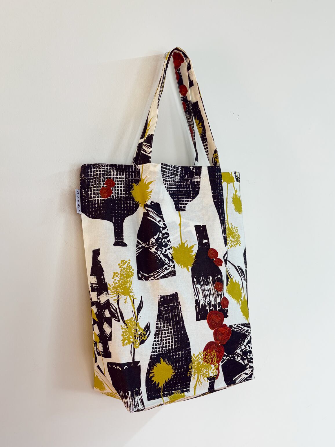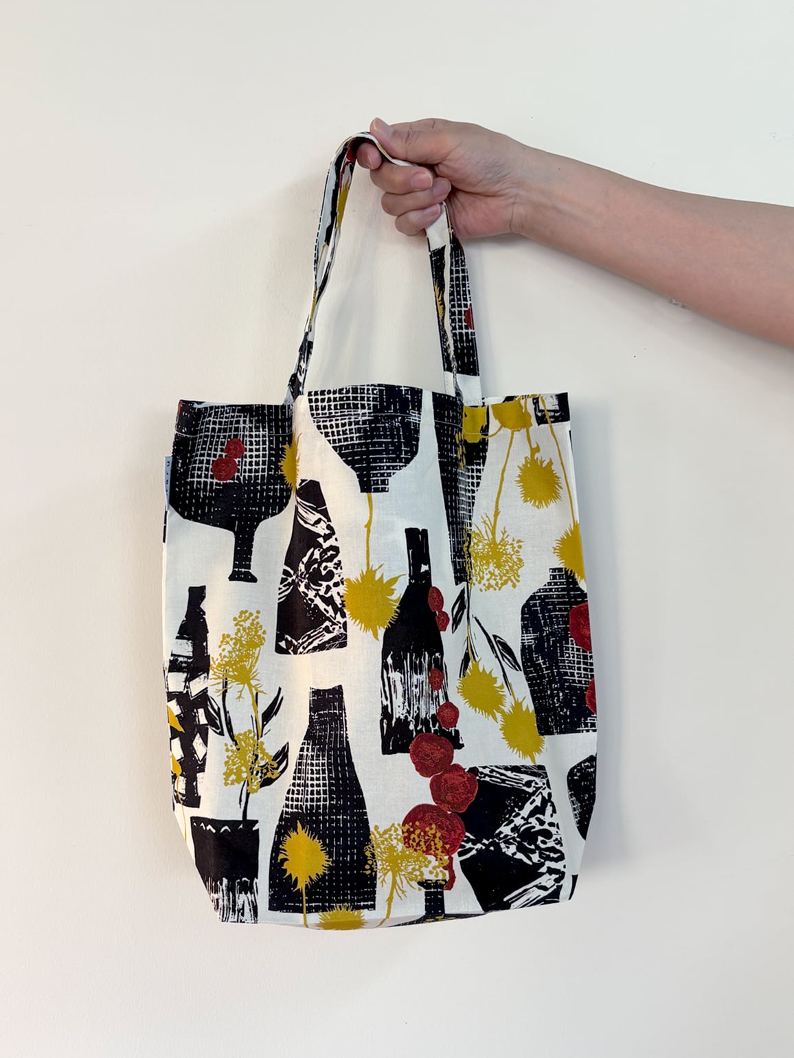 通気性のよい平織りコットン生地でつくったポケット付きのトートバッグ。