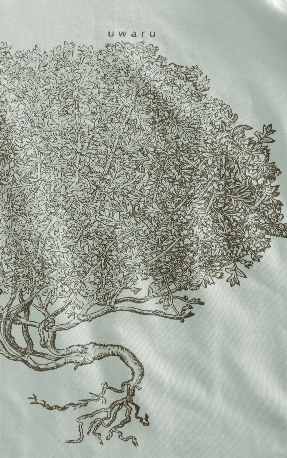 京都の染工場さんの手捺染によるuwaru定番オリジナルTシャツ。