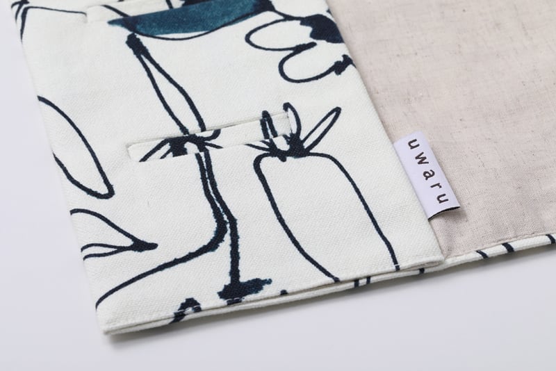 筆の走る勢いに任せて描き上げた遊び心のある架空の植物たち。手描きによって偶然に生まれたインクの滲みや溜まりは思いのほか力強く、かつその姿は淡々とした静けさが漂います。”無口な植物”と名付けたテキスタイルが出来上がりました。生地は厚手で丈夫な10号帆布です。